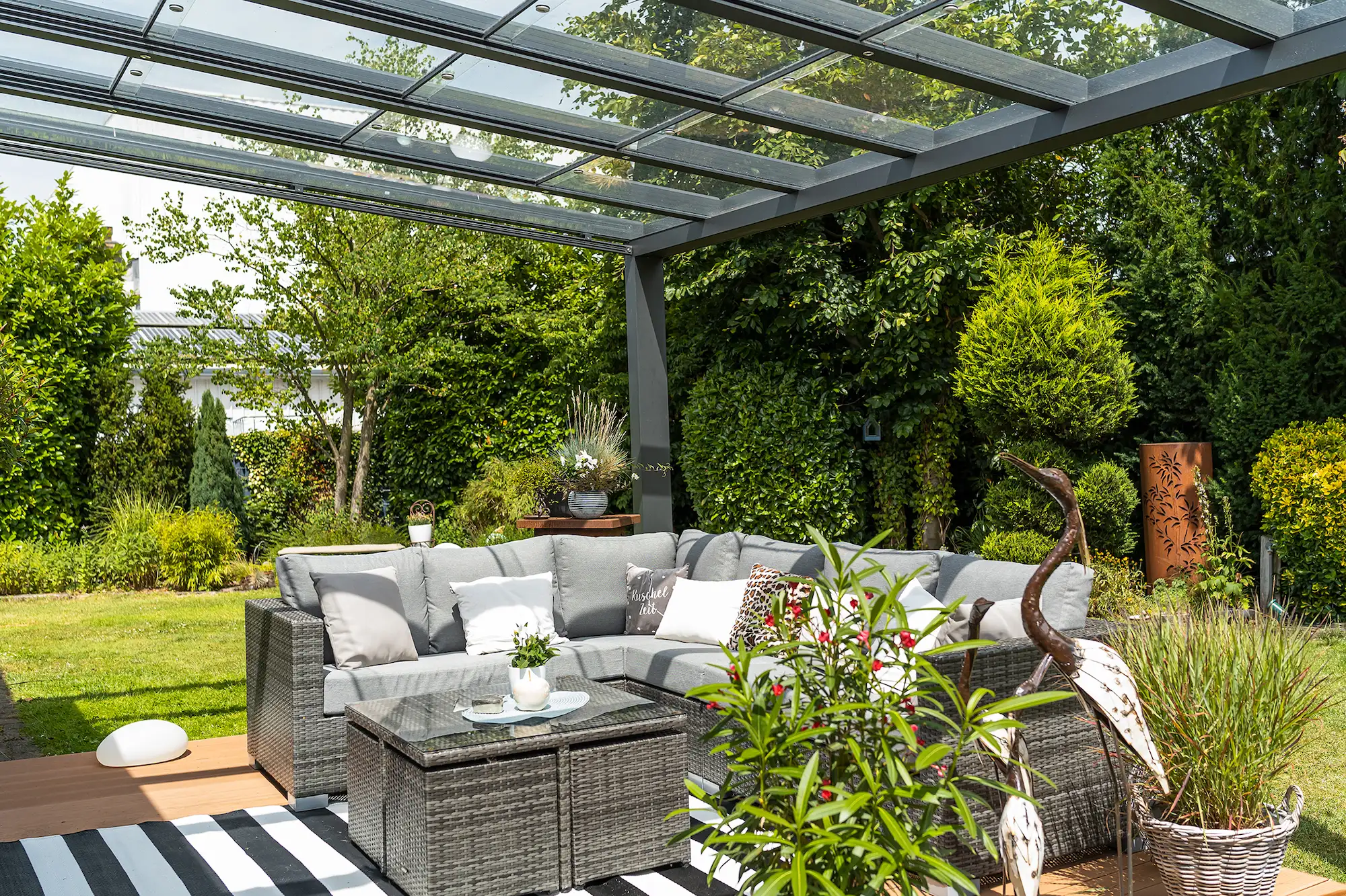 Met deze luxueuze overkapping brengt u een frisse wind in uw tuin